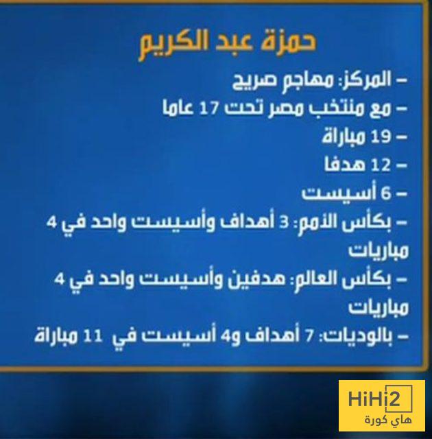 إليكم أرقام حمزة عبدالكريم لاعب برشلونة الجديد الدولية مع المنتخب المصري: